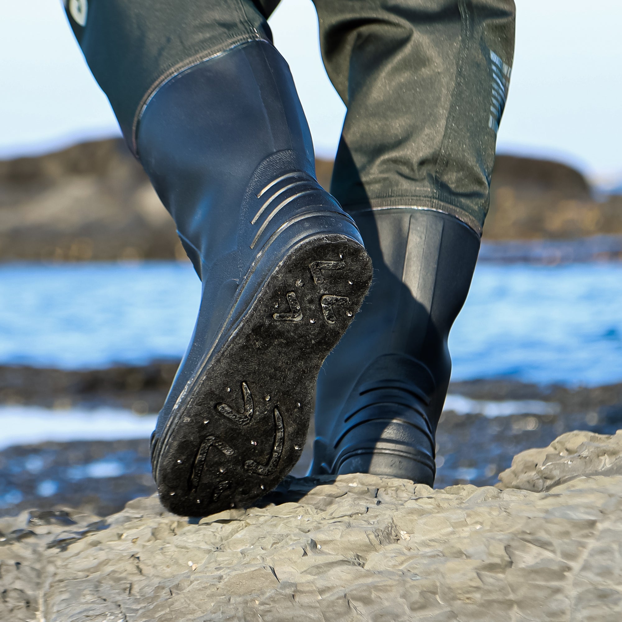 日本人の足型にフィットし、快適な履き心地を実現。耐水圧設計のつま先が入水時の圧迫感を軽減し、長時間の釣行でも疲れにくい仕様です。