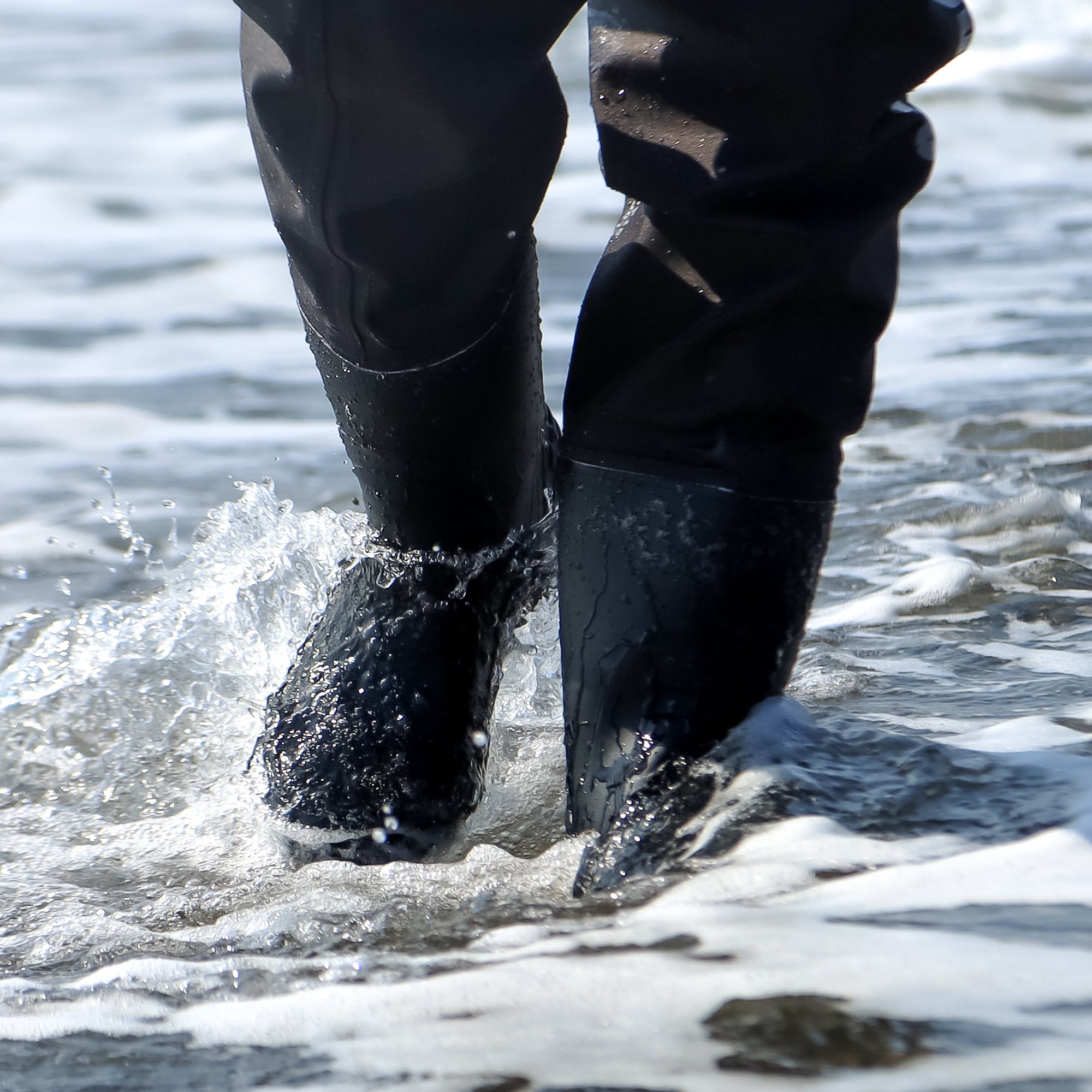 ※ウェーダーはあくまで「濡れずに水辺を移動するための胴長靴」です。入水時にはウェーダーの長さギリギリまで入る等の無理な使い方は絶対にお控えください。
